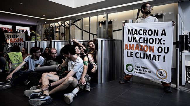 Environ 400 militants associatifs ont bloqué les accès de sites d'Amazon à Lille, Toulouse et Paris, pour protester contre la destruction d'emplois et le rôle joué, selon eux, par le géant américain de la vente en ligne dans le dérèglement climatique.